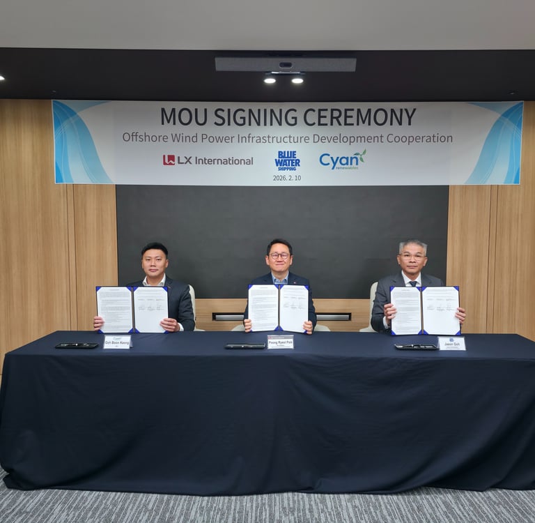 Cyan Renewables, LX International and Blue Water Shipping have entered into a landmark Memorandum of Understanding (MOU) to collaborate on the development of a next‑generation offshore wind marshalling port facility in Dangjin.